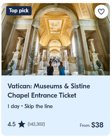 For those who prefer a quicker experience, the Best of the Vatican: Fast Track Highlights tour is perfect. This tour allows you to bypass lengthy entry lines, providing immediate access to the Vatican Museums and the Sistine Chapel. Led by a passionate and knowledgeable guide, this 2.5-hour tour offers an engaging insight into the rich history and art of the Vatican, making it an excellent choice for time-conscious travelers.